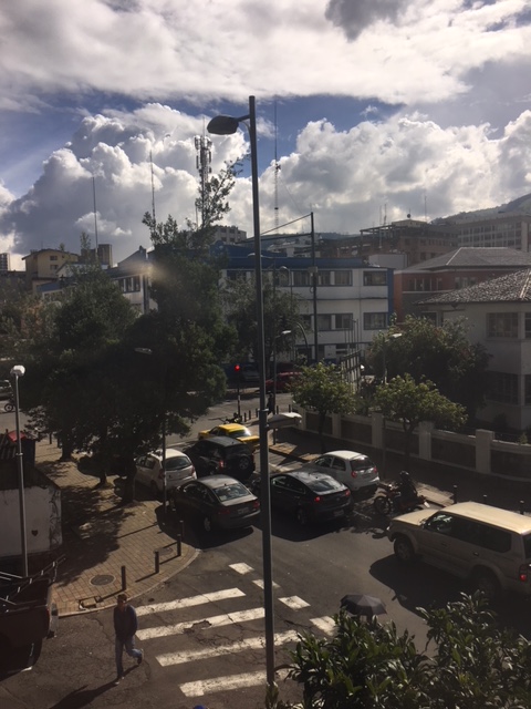 Morning window view. This is really the only way to get the weather in Quito - look outside. The weather can change in an instant and the weather report isn't always so reliable, since the weather can be very different depending on where you are in the city. It's those microclimates!